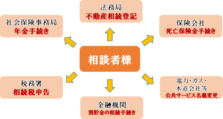 当事務所では、相続手続きや上記の遺産整理業務も同時に行います。